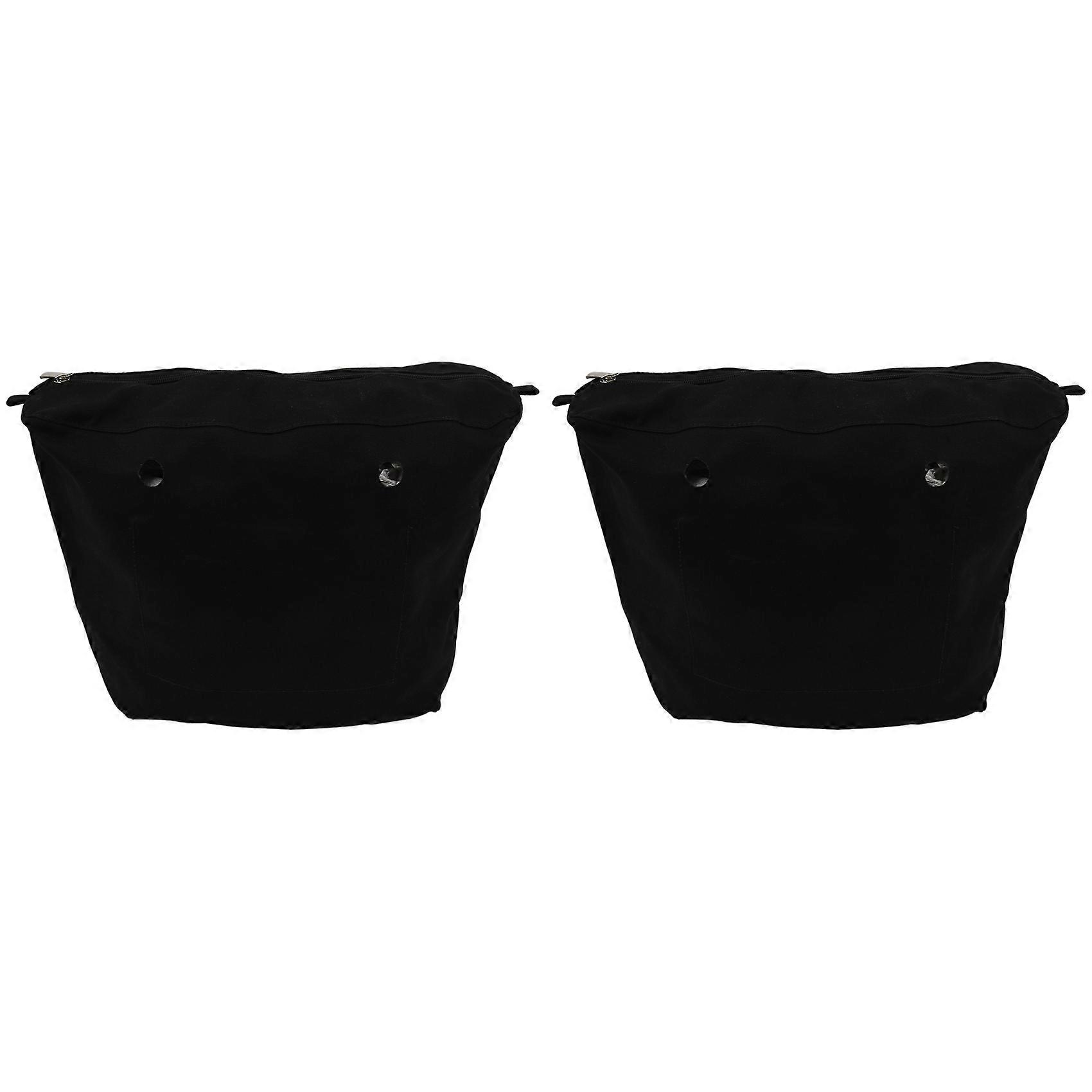 2X Waterproof Solid Canvas Insert Inner Lining Insert Zipper Pocket for Obag O Bag Handbag Bag Black