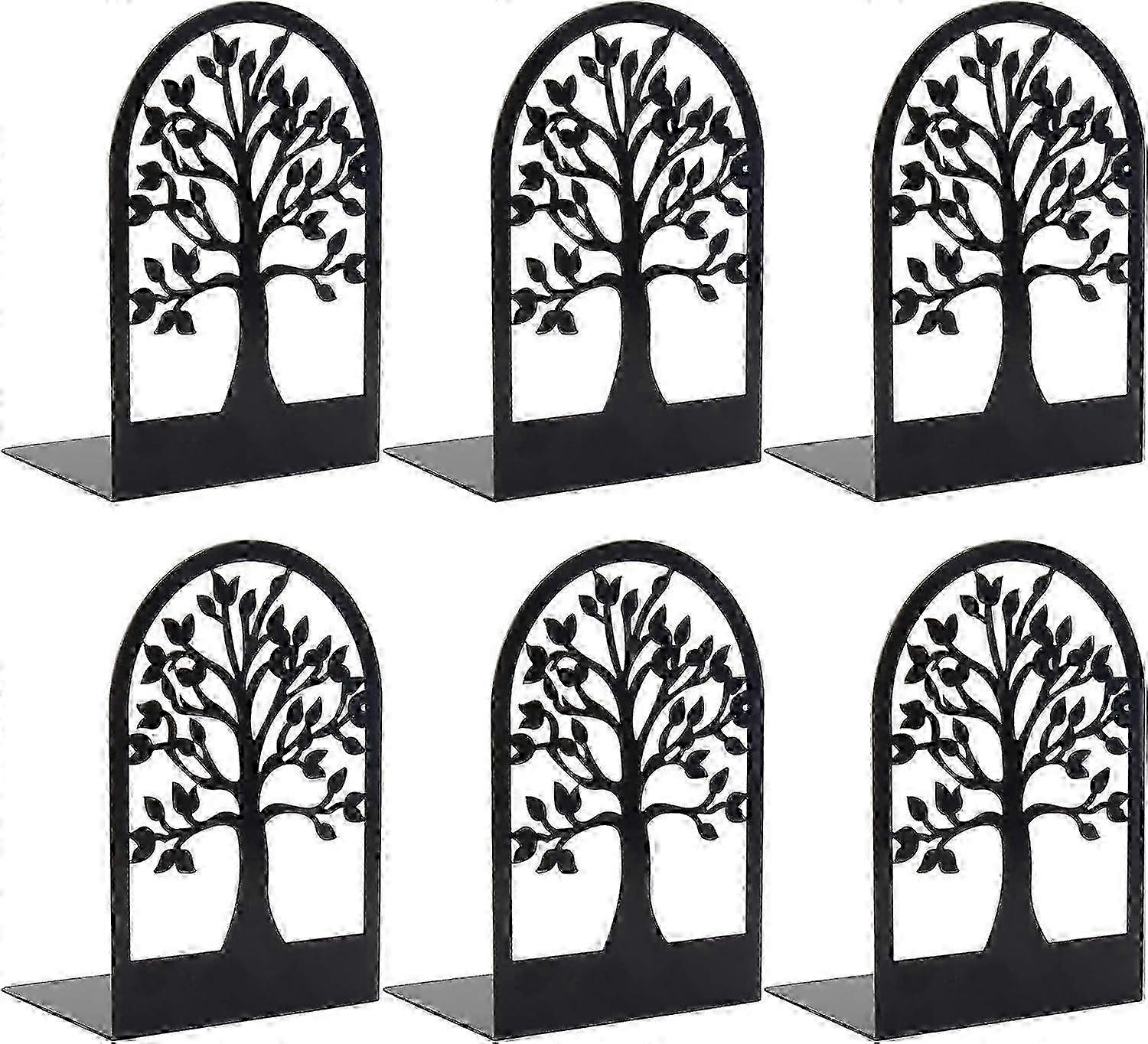 (3 Pairs) Decorative Bookends, Tree of Life Bookends - Heavy Duty Book Metal Bookends