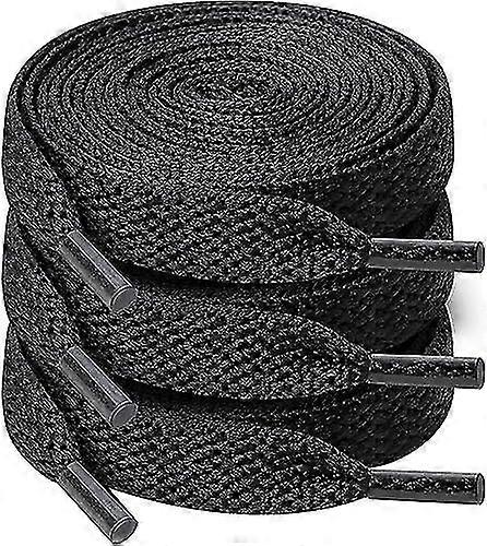 3 Pairs Of Shoe Laces, 8mm Wide Flat Shoelaces For Sneakers, Running, Adults, Kids Black