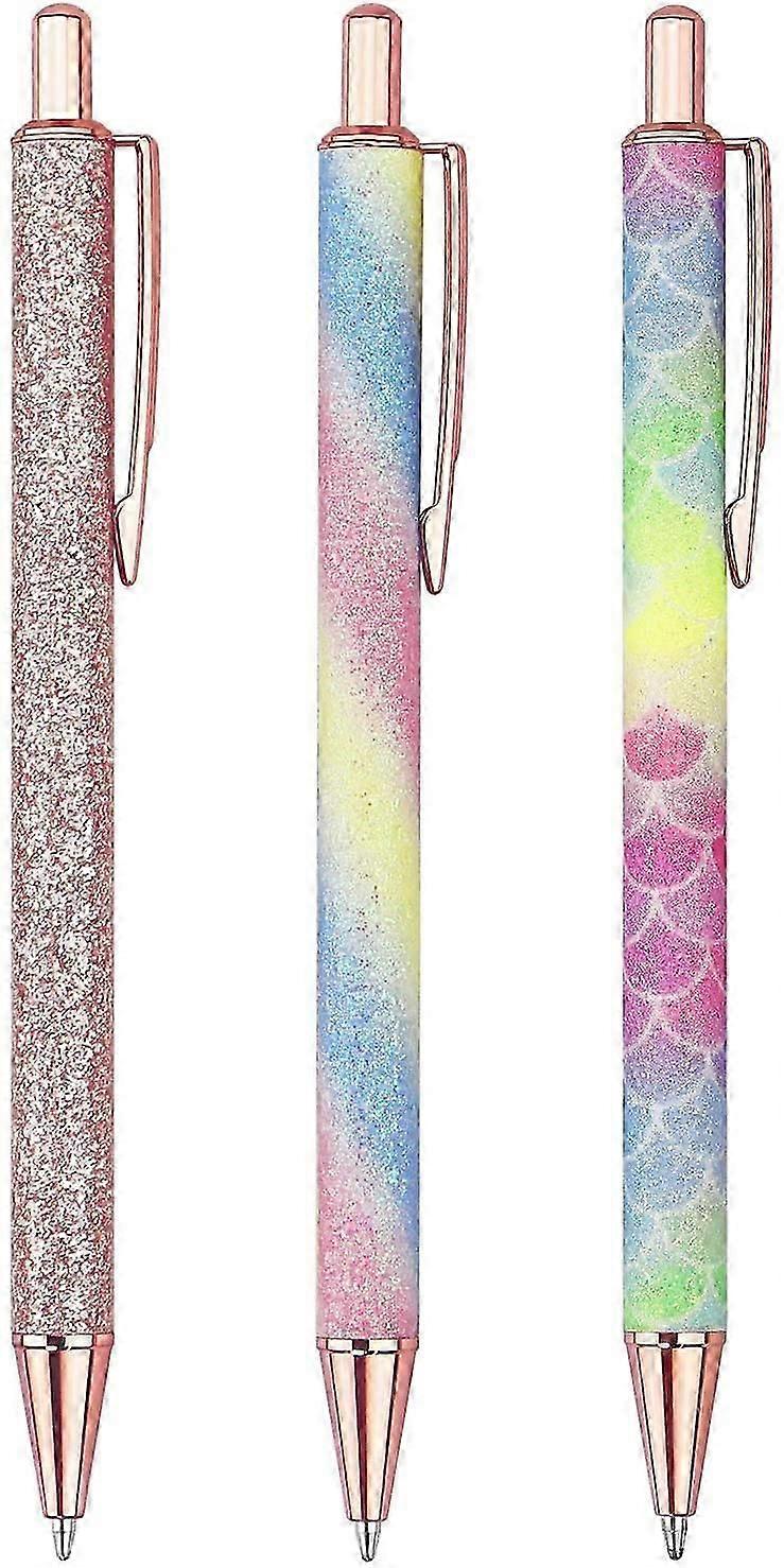 3 Ballpoint Pens, Glitter Rose Gold Click Style Retractable Ballpoint Pen