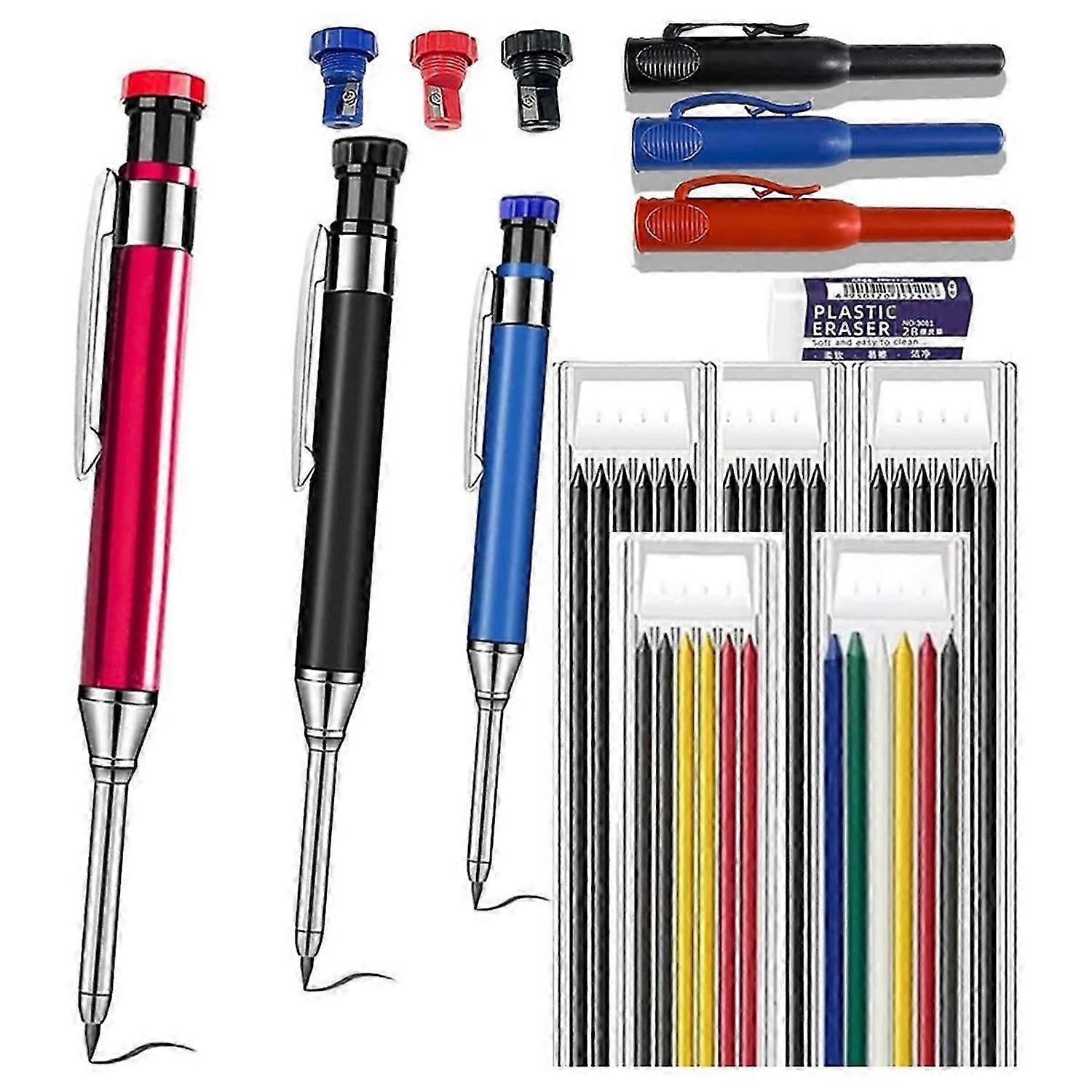 3 Carpenter Pencils, 33 Colorful Combination Pen Cores, Aluminum Rod Metal Deep Hole Mechanical Penc