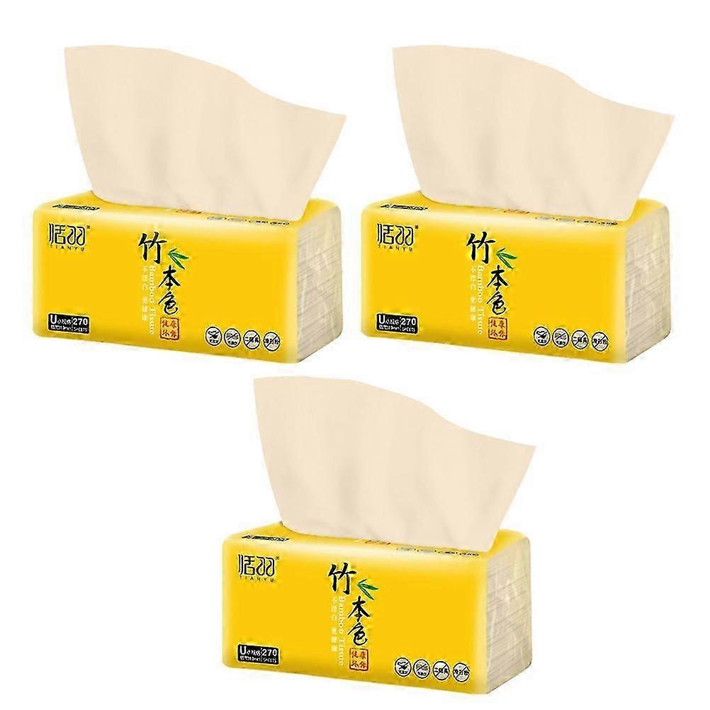 3 Bags of 810 Sheets Paper Extraction Flexible Napkin Bamboo Tissue Facial Cleaning Towel Disposable Dry and Wet Tissue Yellow (270 Sheets in 1 Bag)