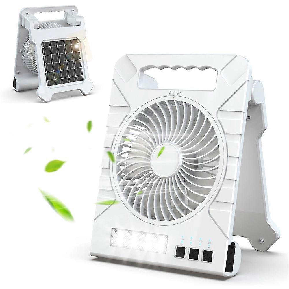 3 Gears Adjustable Solar Powered Desk Fan with LED Light Portable Power Bank for Camping / Hiking