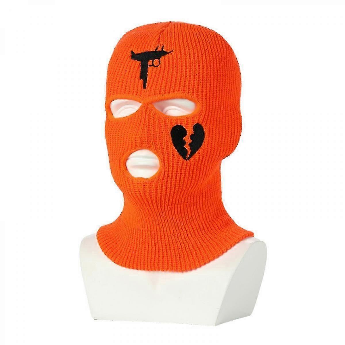 3 Hole Knitted Windproof Balaclava Mask Winter Full Face Cover Cycling Neck Warmer for Men Women Orange