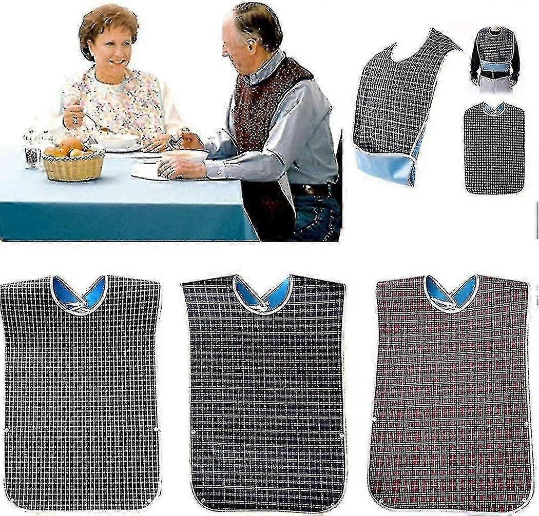 3 Pack Adult Bibs With Crumb Catcher - Washable Adult Dining Bib, Large Adult