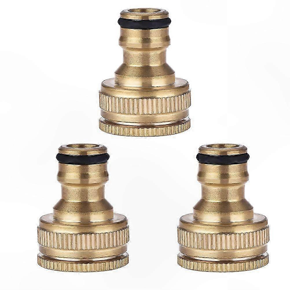 3-Pack Hose Tap Connectors, 1/2 & 3/4 Inch Garden Water Pipe Adapters, Brass Faucet Thread Connectors for Outdoor Use
