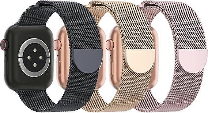 3 Pack Mesh Metal Bands Compatible with Apple Watch Band 38mm 40mm 41mm 42mm 44mm 45mm 49mm, Stainless Steel Magnetic Loop Strap Wristband