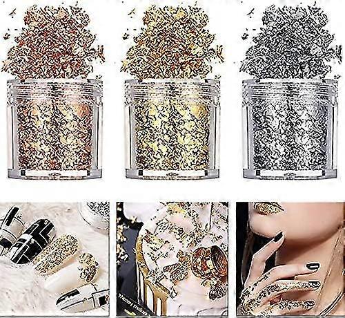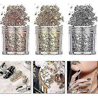 3 Bottles/ Set Of 3d Nail Art Stickers Imitation Gold Silver Copper Metal Color Foil Fragments Diy Decoration Set For Nail Art Makeup Painting Handmad