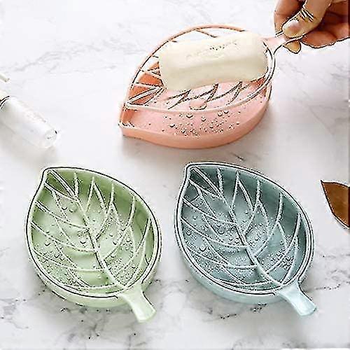 3 Color Soap Dish,leaf-shaped Shower Soap Holder With Draining Tray,fashionable Soap Dish For Shower Kitchen,3 Pack
