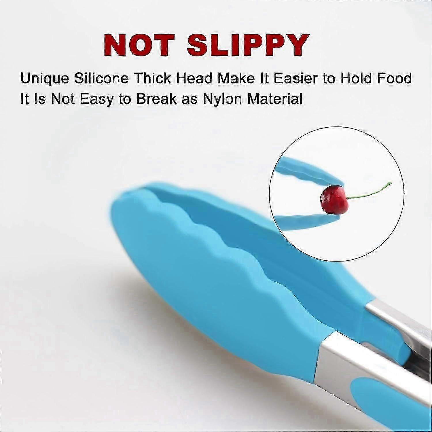 3 Pack Blue Kitchen Tongs, Premium Silicone BPA Free Non-Stick Stainless Steel