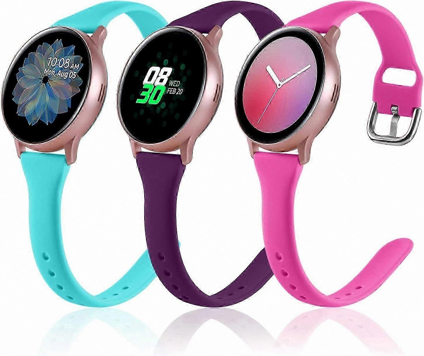 3-Pack Silicone Bands for 20mm Watches, Compatible with Active 2, Watch 3, Watch 42mm, Gear S2 Classic, Gear Sport, Durable Slim Strap for 40mm 44mm M