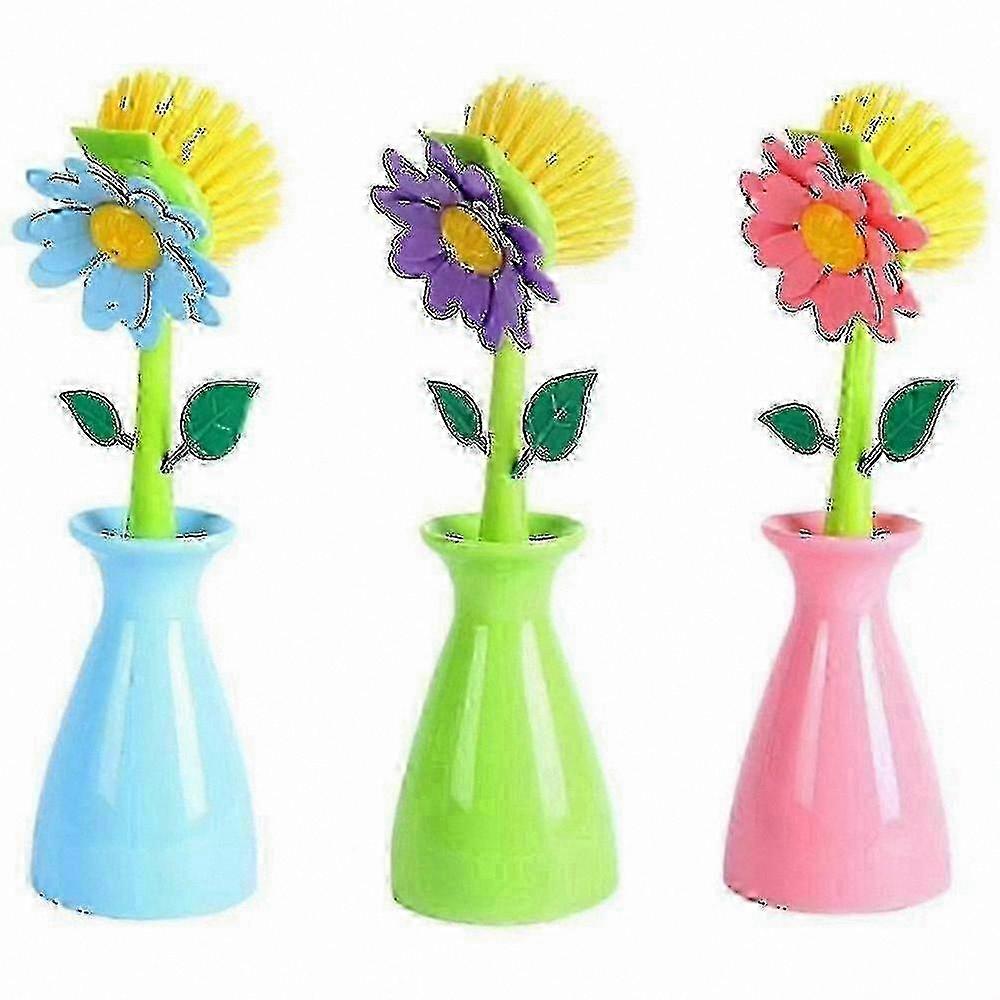 3-Pack Long-Handle Dish Brushes, Flower-Shaped Scrubbers for Pots, Pans, and Kitchenware Cleaning