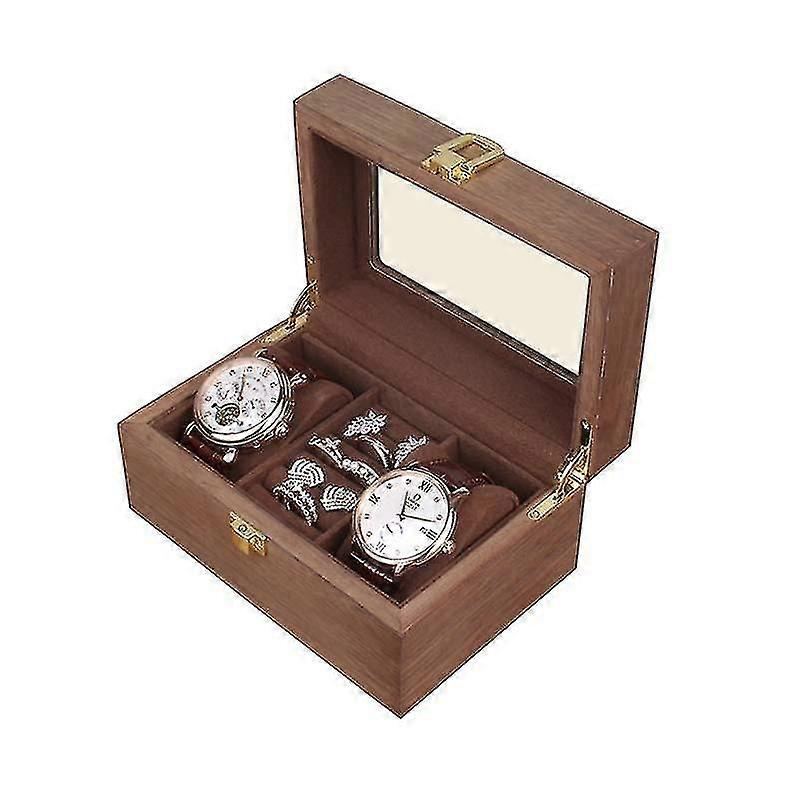 3 Slot Watch Box Ring Box, Solid Wood With Large Glass Lid, With Removable Cushion Wood Black Walnut
