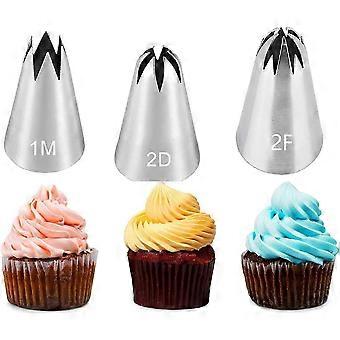 3 Piping Nozzles - 1M 2D 2F Large Piping Nozzle Tips, Stainless Steel Cake Decorating Tips for Frosting, Cupcakes.