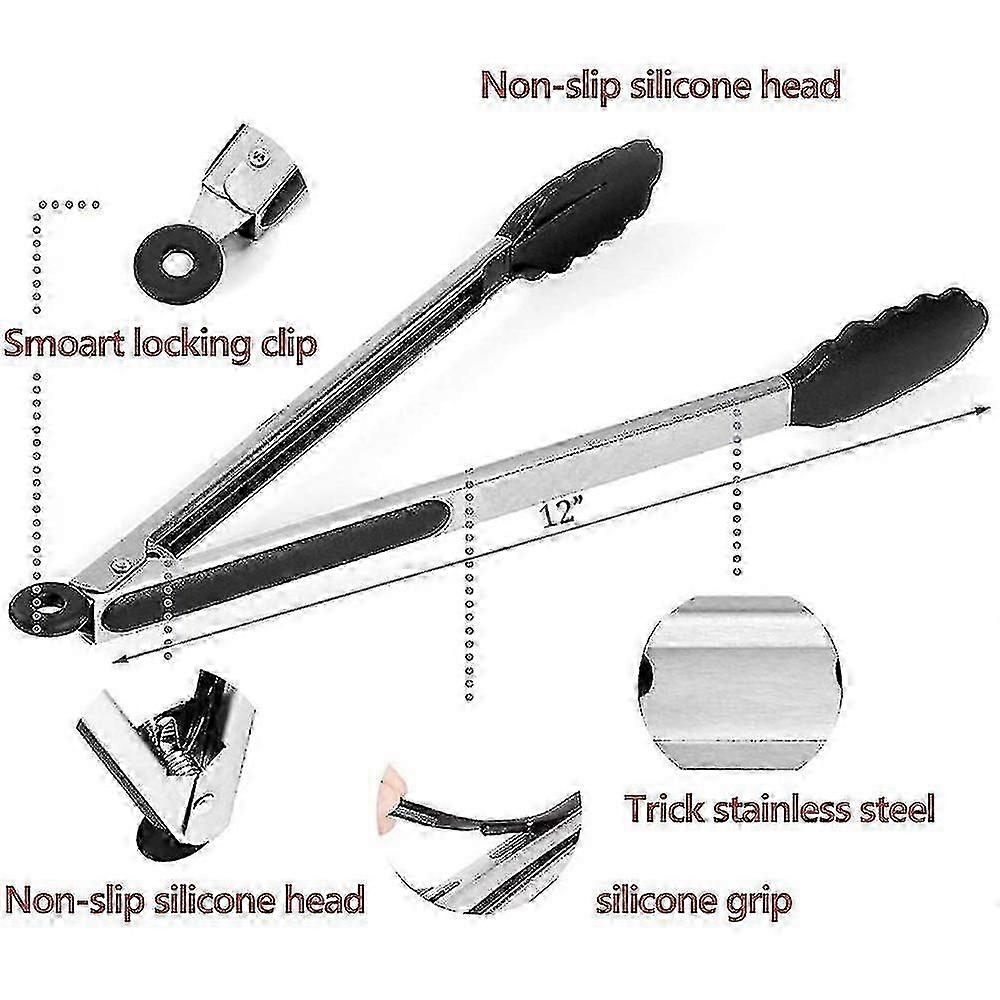 3 Piece Set Food Grade Stainless Steel Kitchen Tongs Compatible With Cookig