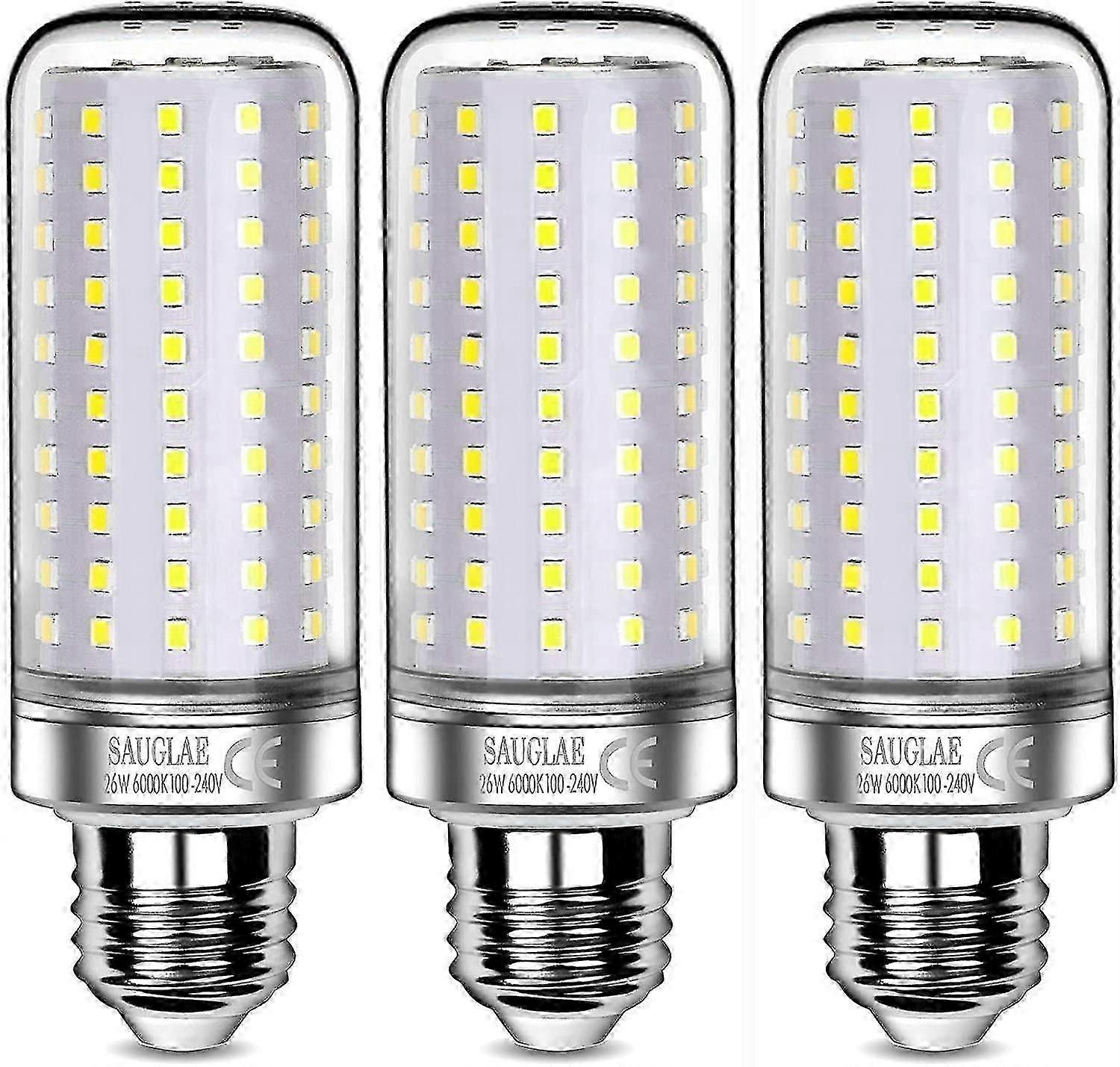 3pc 26w Led Light Bulbs,200w,6000k Cool White,e27 Screw Light Bulbs