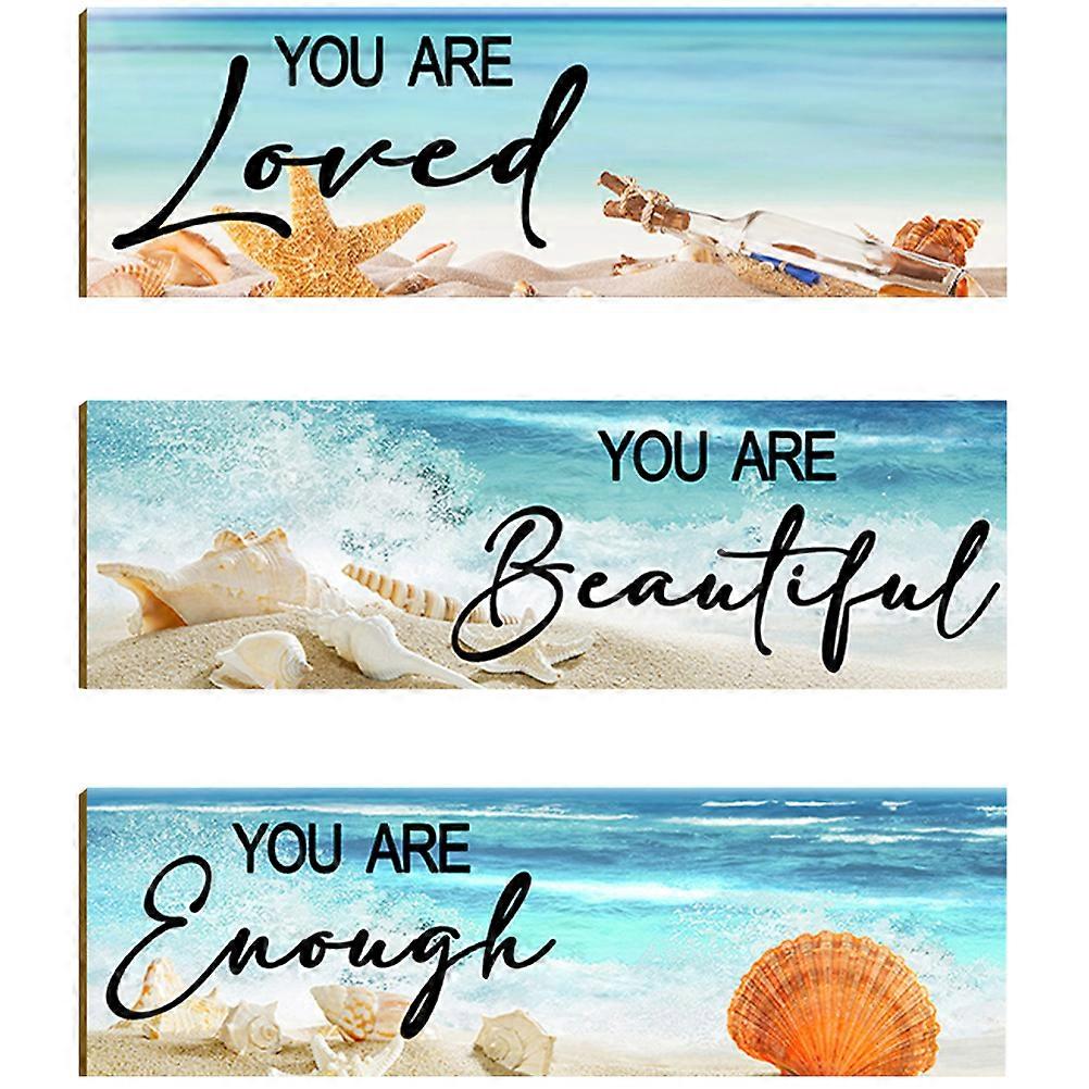 3pcs Wall Sign Beach Wooden Wall Art Ocean Beach Wall Decoration Living Room Wall Decor