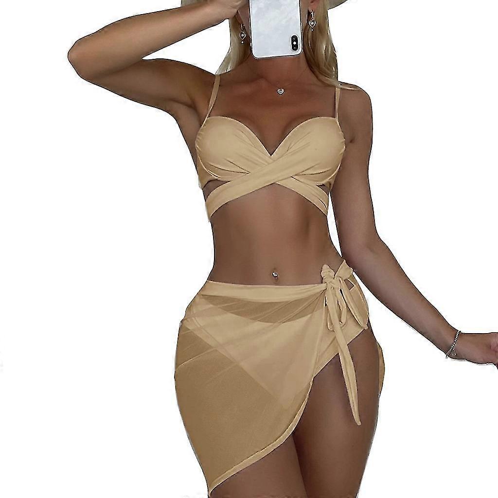 3 Pieces Lace Up Swimsuits For Women Girls Solid Bathing Suits With Beach Skirt