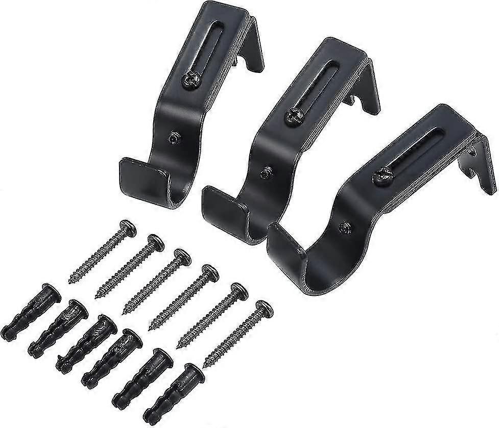 3pcs Curtain Pole Brackets Set With Screws, Heavy Duty Metal Curtain Rod Holder - Adjustable Length Of 9cm To 11.5cm (black)