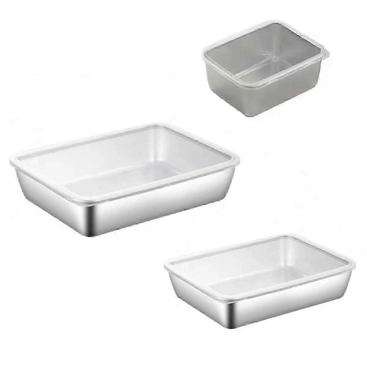 3PCS Stainless Steel Food Storage Serving Trays Dish with Cover Home Kitchen Organizer Food Contain