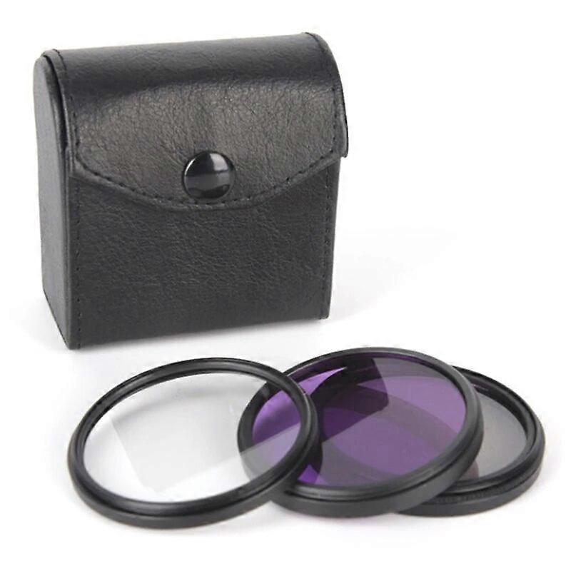 Features: UV Protector filter Protects your camera lens from dust, moisture, scratches and fingerprints Provides additional benefits of correction for Ultraviolet(UV) light which can register on film and videotape as a bluish cast and can obscure distant details Can be left on the lens at all times CPL Circular Polarizer filter Removes unwanted reflections from non-metallic surfaces such as water or glass Increases color saturation, creating deep, rich scenics images Add contrast to blue skies and water shots Ideal for outdoor photography, minimizes haze Filter can be rotated to determine the amount of reflection to be removed FLD Fluorescent Correcting filter Corrects green cast that appears when shooting under general purpose fluorescent lighting Dramatically increases color saturation of subjects under natural light Fits Olympus,Canon, Nikon, Pentax, Sony, and Other Digital SLRs !! These Filters are manufactured from high quality solid optical glass. Each individual filter is heat treated to avoid any rare movement or distortion The rings are double-threaded, so you can stack filters as needed, and you can even put your lens cap on over the filters Note:Please check your lens thread and choose the right size when you make order Package contents: 1x CPL Filter 1x UV Filter 1x FLD Filter 1x Carry bag Note: Please understand because of the light irradiation or computer display difference, so I can't guarantee photos and real color is 100% the same. _x000D_