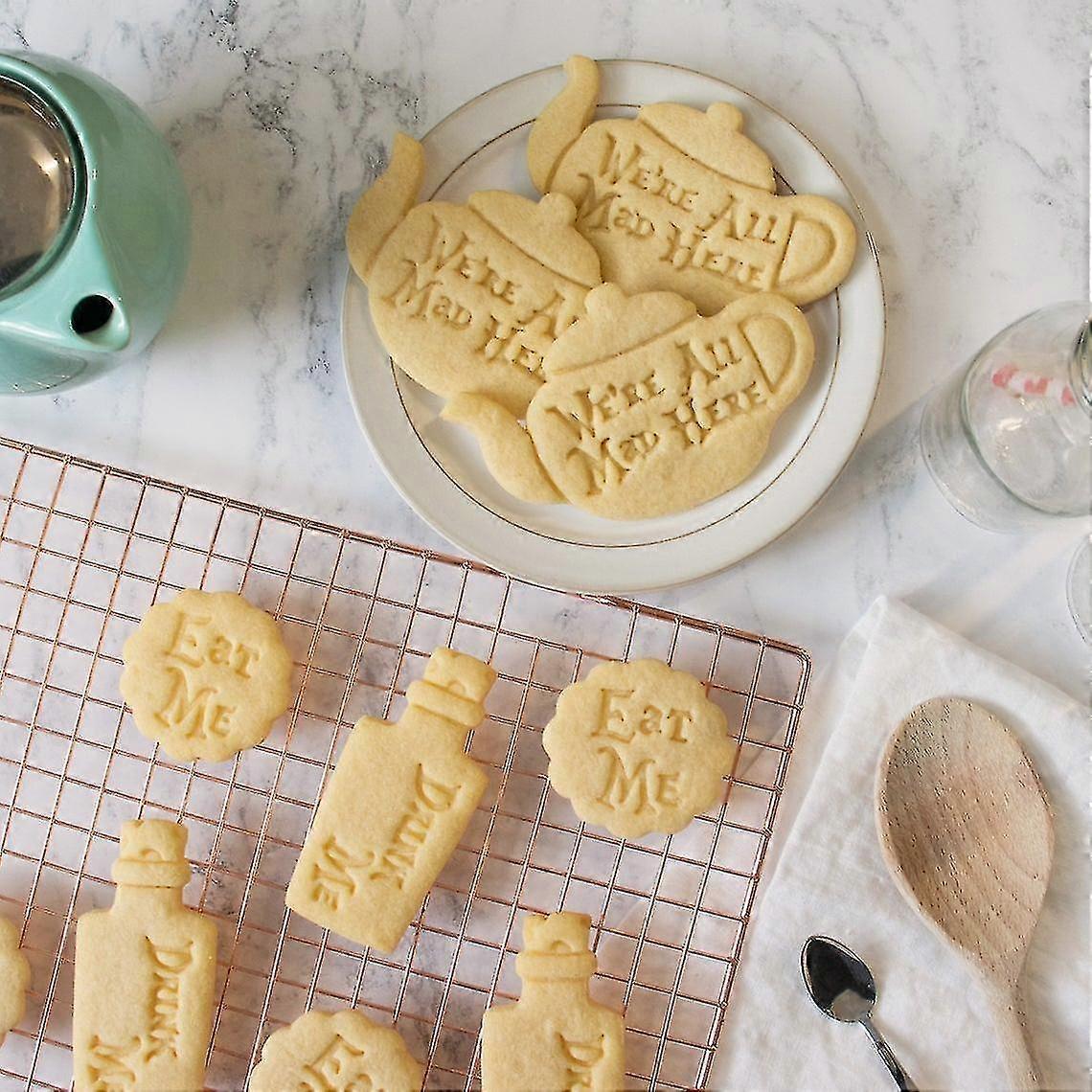 3pcs Cookie Cutter With Sentence Drink Me/eat Me/we 're All Mad Here Baking Tool Kitchen Supply