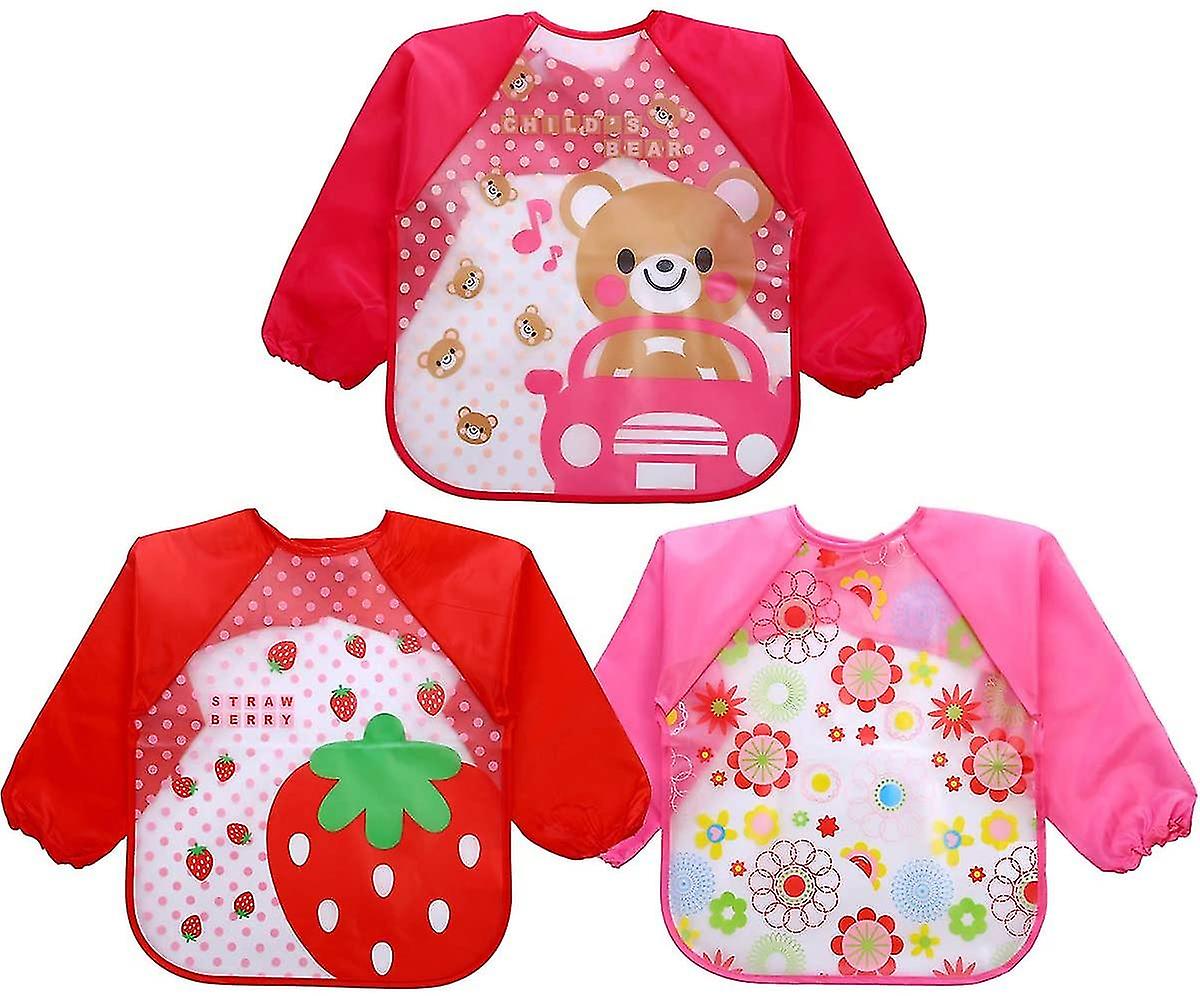 3pcs Baby Bibs With Sleeves Waterproof Long Sleeved Apron For Infant