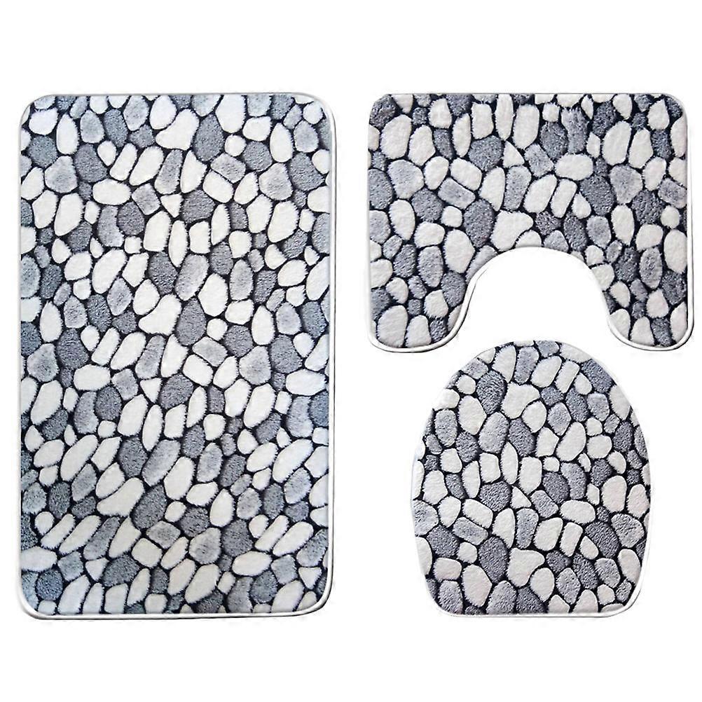 3Pcs Coral Fleece Bathroom Mat Set Toilet Lid Pad Floor Bath Mat Rug