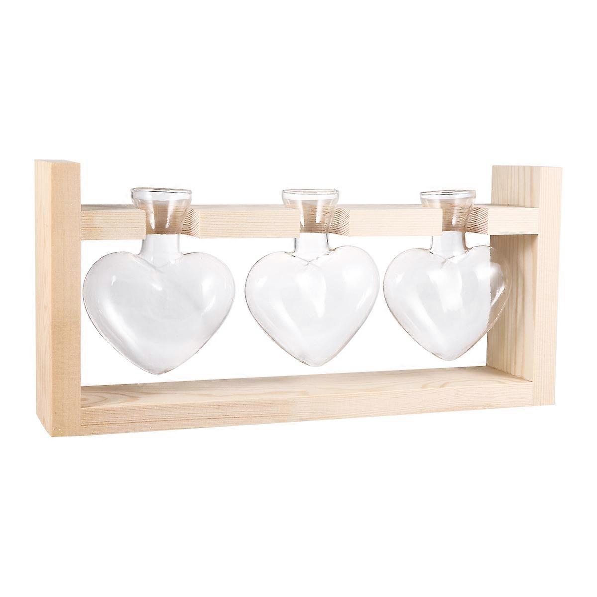 3pcs Heart Glass Vases with Wooden Rack, Hydroponic Plant Containers for Flower Arrangement, Heat Resistant Decorative Terrarium for Tulips Roses