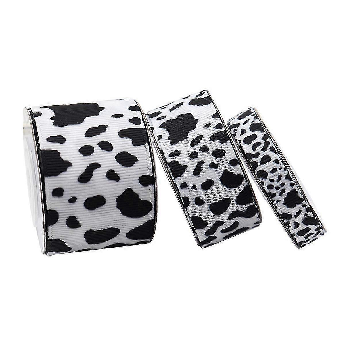 3Pcs White Black Cow Print Wired Edge Ribbon Craft Ribbons Gift Wrapping Ribbon Animal Print RibbonNEW