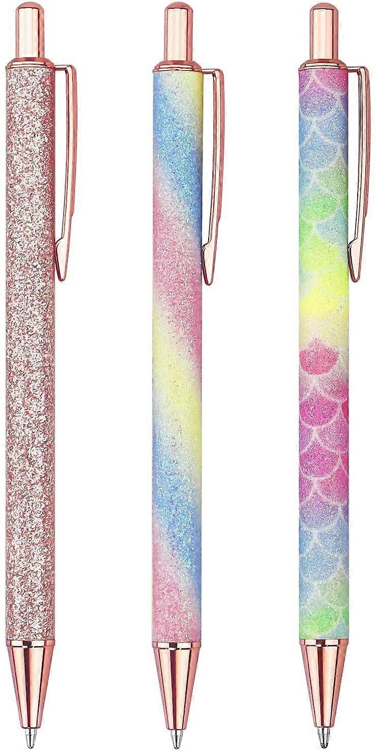 3 PCS Ballpoint Pens, Glitter Rose Gold Click Ball Pens, Metal Retractable Pen, Black Ink Medium Point 1mm, Gifts and Office Supplies