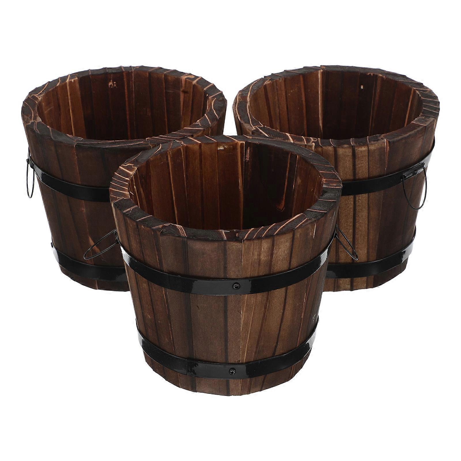 3pcs Carbonized Wood Flower Pots for Succulents, Plants Vintage Design for Balcony Gardening & Outdoor Decor