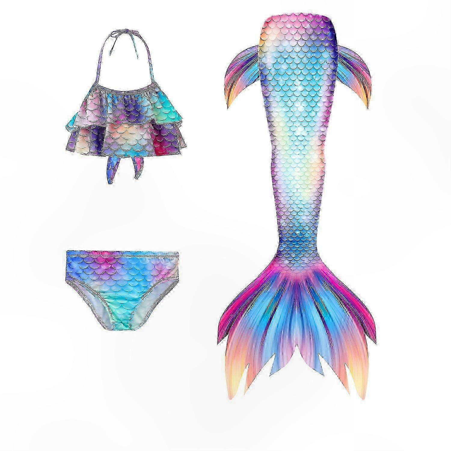 3pcs Girls Mermaid Tail Swimsuit Set for Kids - Ariel Cosplay Costume & Fantasy Beach Bikini