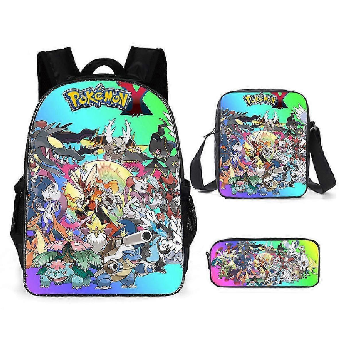 3pcs Pokmon Schoolbag Pikaqiu Backpack Polyester Comfortable Lightening Children's Bag