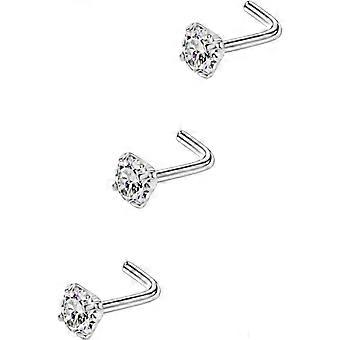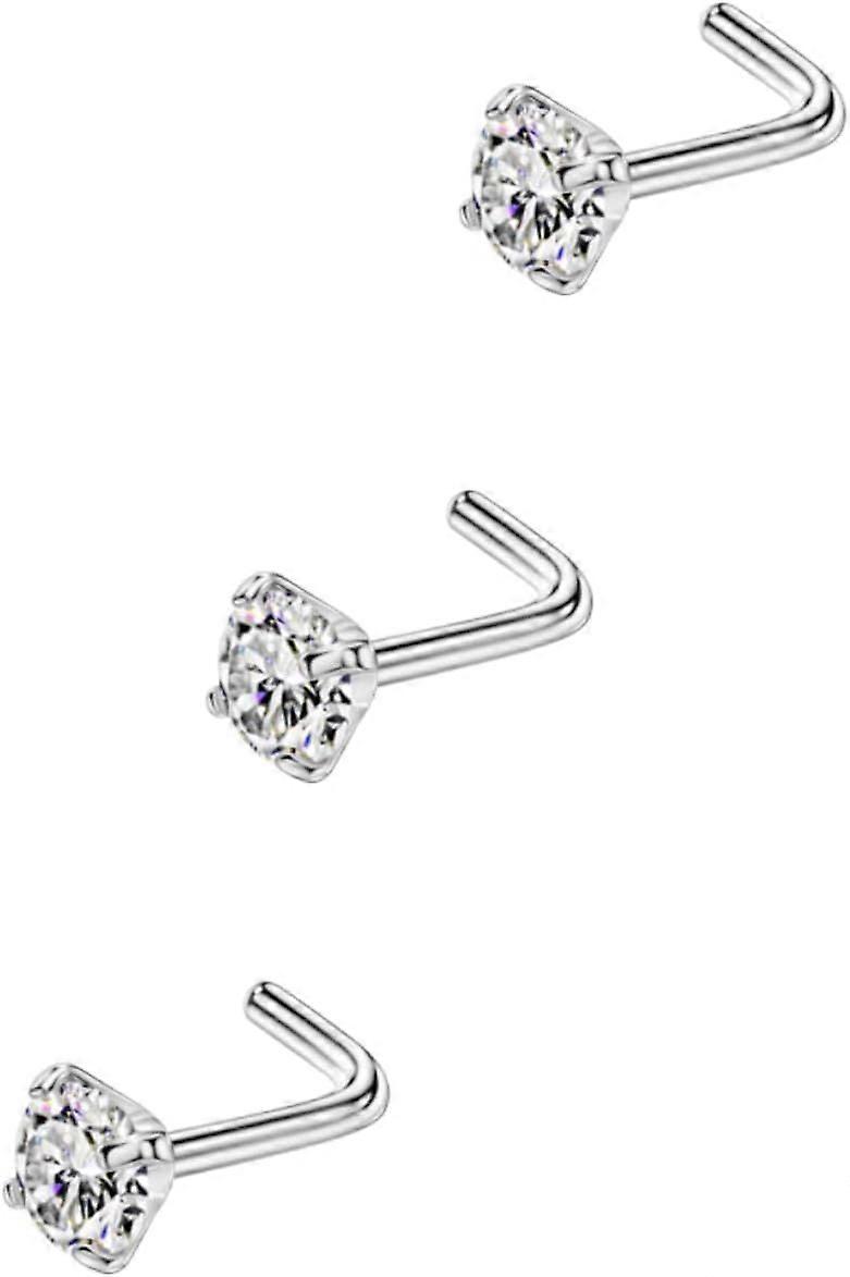 3 Pieces CZ Nose Studs L Shape Nose Rings Studs for Women Surgical Steel Nostril