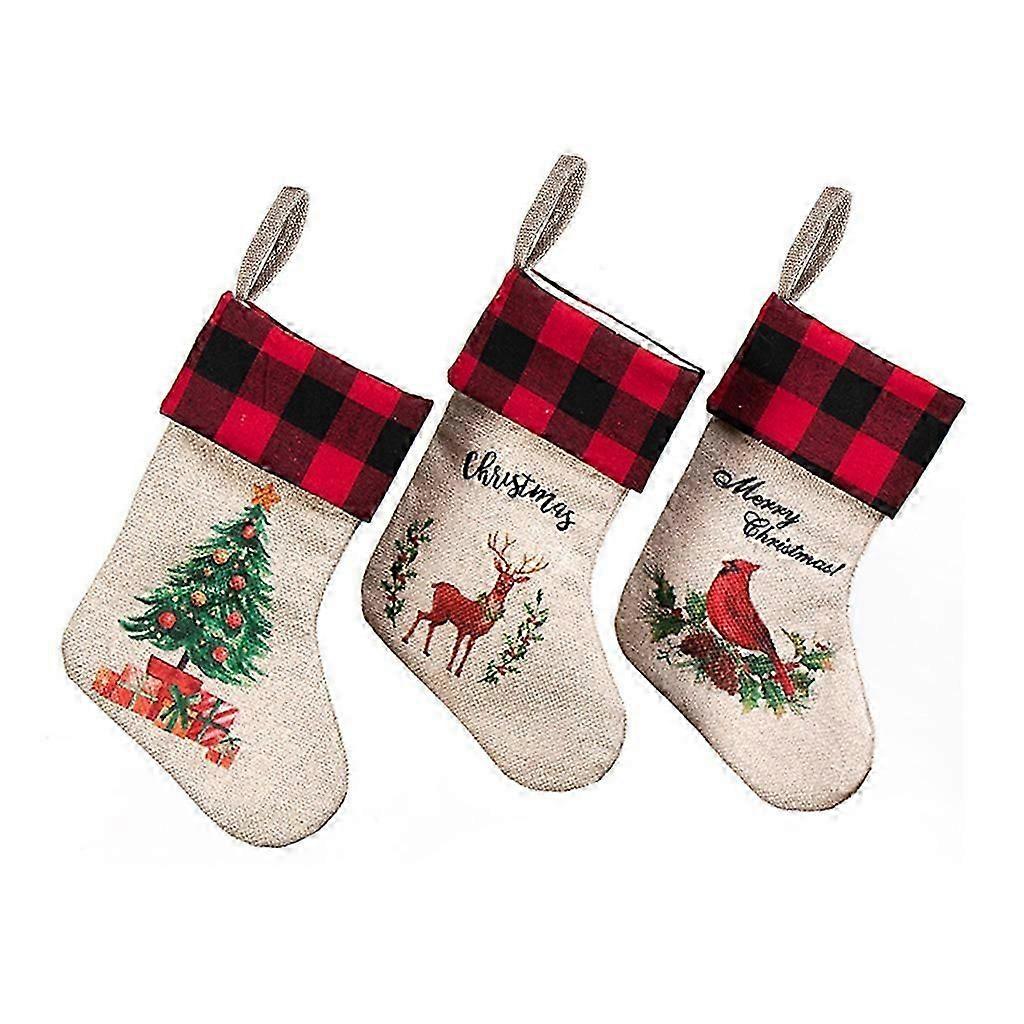 3pcs Christmas Stockings Plaid Xmas Stockings Decoration Plush Gift Candy Bag