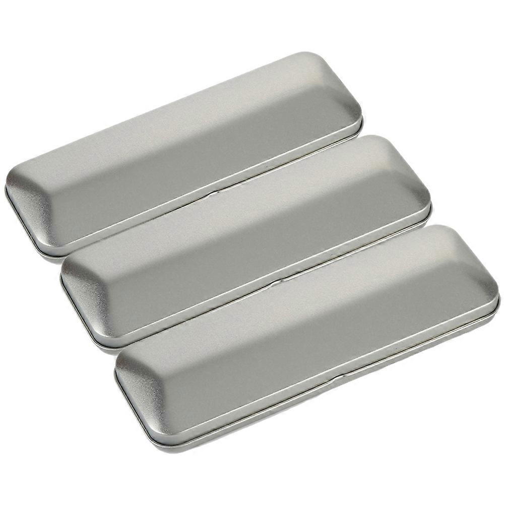 3pcs Pen Case Simple Metal Pencil Cases Hinged Tin Boxes for Office School