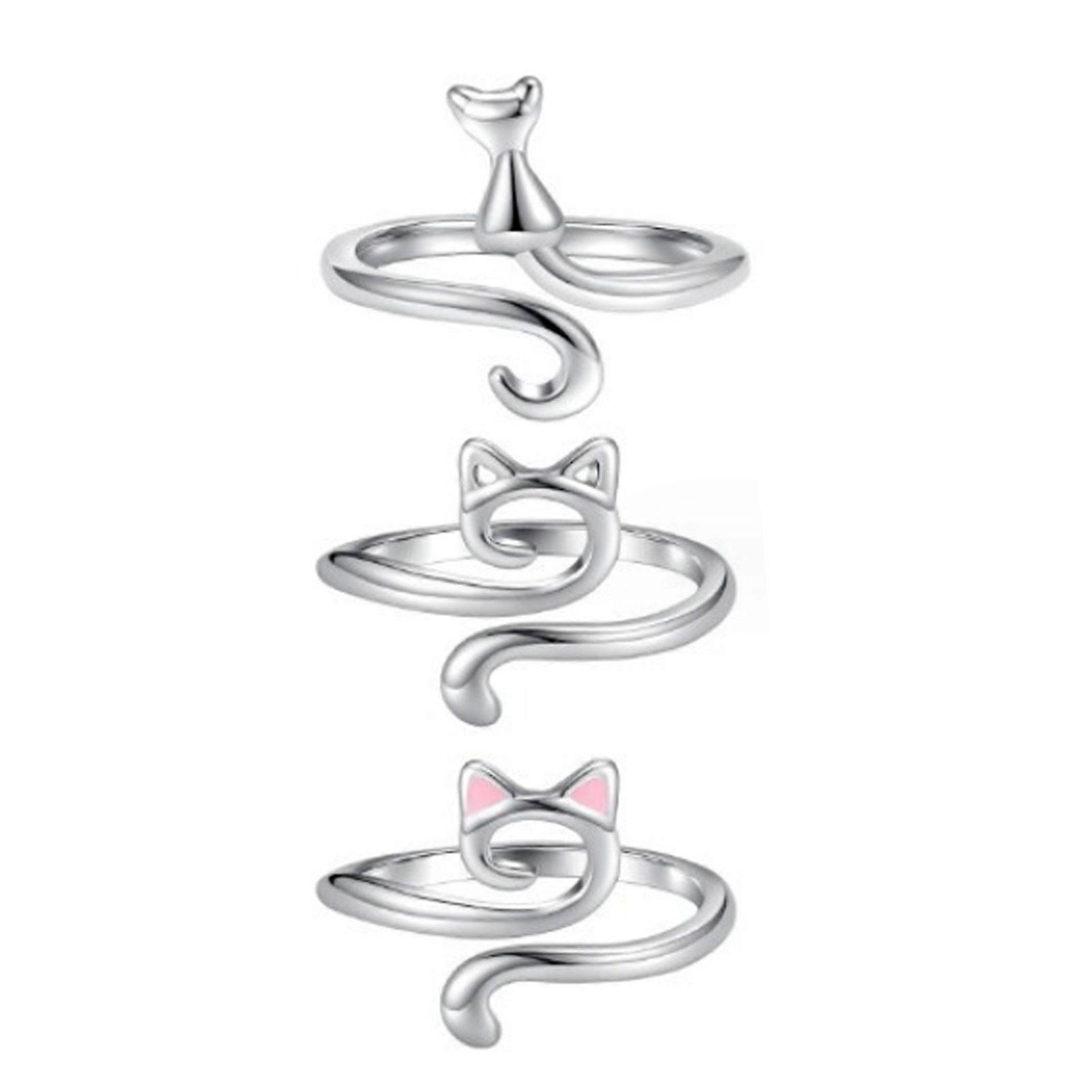 3pcs Crochet Ring Adjustable Zinc Alloy Cat Open Yarn Guide Finger Holder Ring for DIY Craft