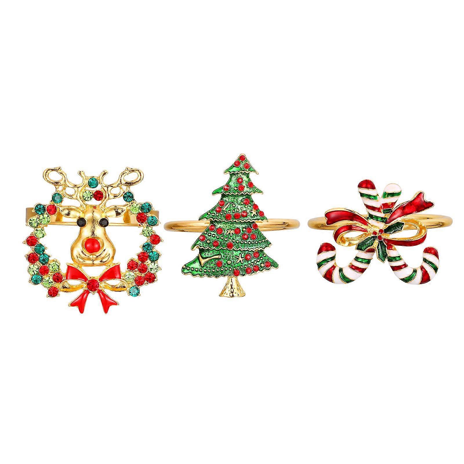 3pcs Napkin Rings Christmas Themed Shiny Rhinestone Alloy Dinning Table Decor