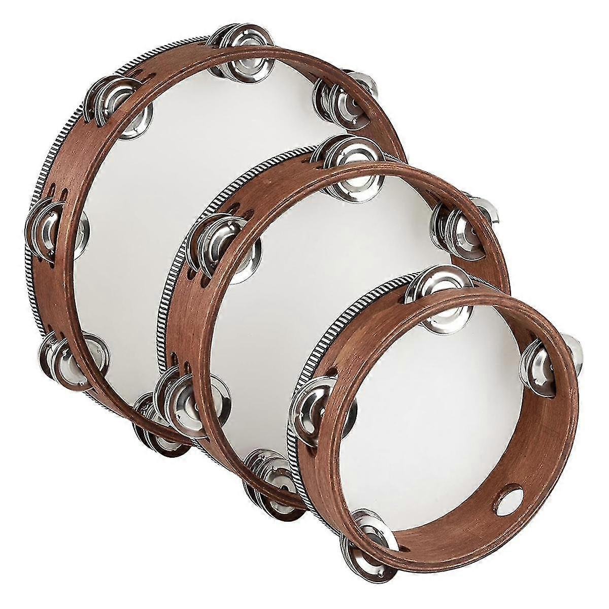3 Pcs Wooden Hand Held Percussion Tambourine , Tambourines Musical Instrument For Church, Wedding, , Dance