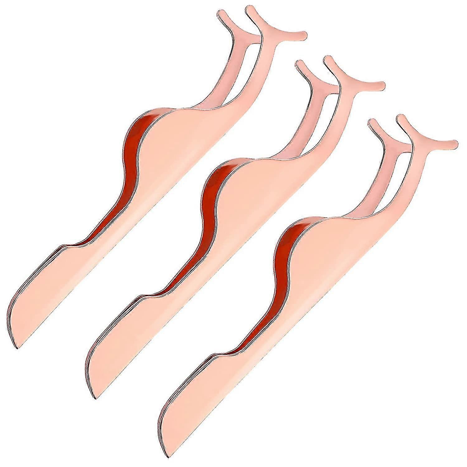 3pcs Eyelash Tweezers Applicator Stainless Steel Curved Tip Eyelash Tweezers Extension Tweezers Rose Gold