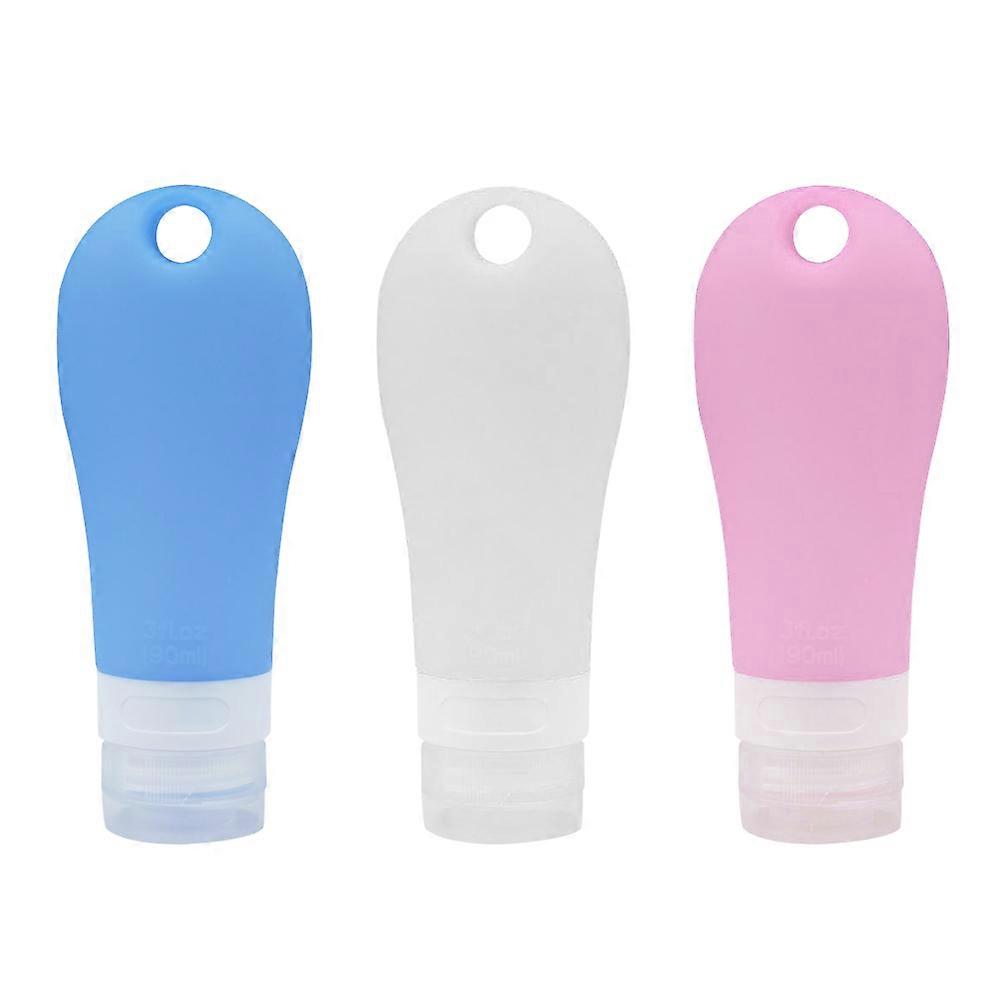 3pcs Portable Travel Bottles Set Soap Dispensers Silicone Bottles Countertop Lotion Containers 90ml (Pink, Blue and White)
