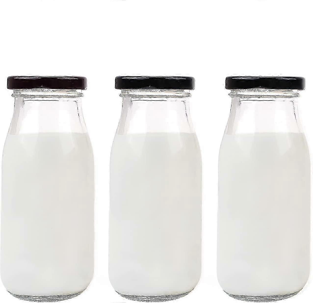 3pcs 250ml Glass Milk Bottle With Pretty Black Lids Small Glass Jars For Decoration SZRH A-F