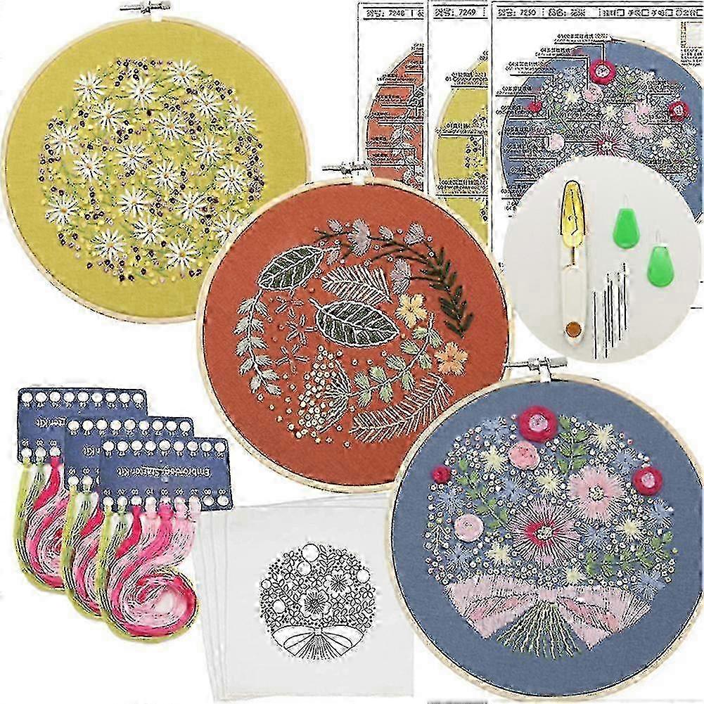 3pcs Flower Three-dimensional Embroidery Kit Cross Stitch Kits With Adjustable Embroidery Hoops Good Gift For Beginners Starters