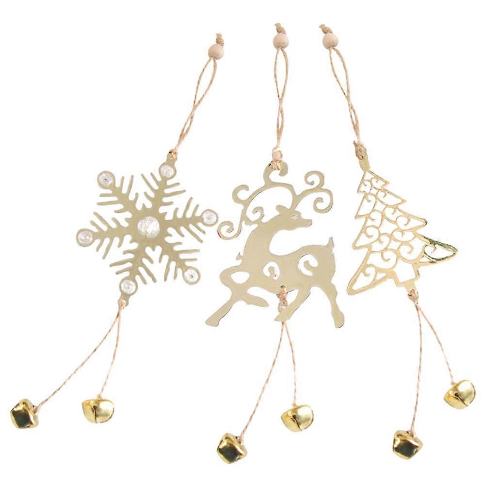 3Pcs Christmas Themed Metal Hanging Decorations For Friends Holiday Gatherings Charming Gold Ornaments Enhancing Decorative Appeal