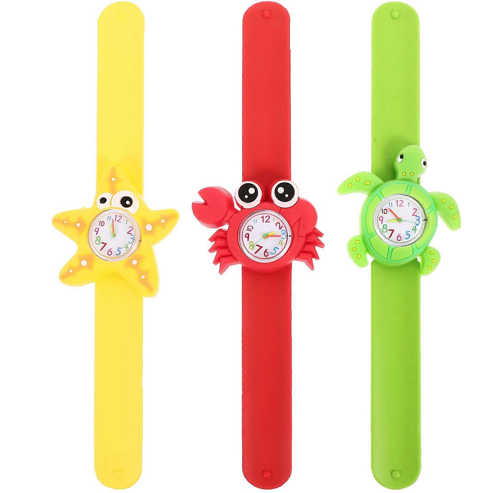 3 Pcs Cartoon Animal Slap Watches with Crab & Turtle Designs Fun & Durable Digital Wristwatch Accessories in Random Colors