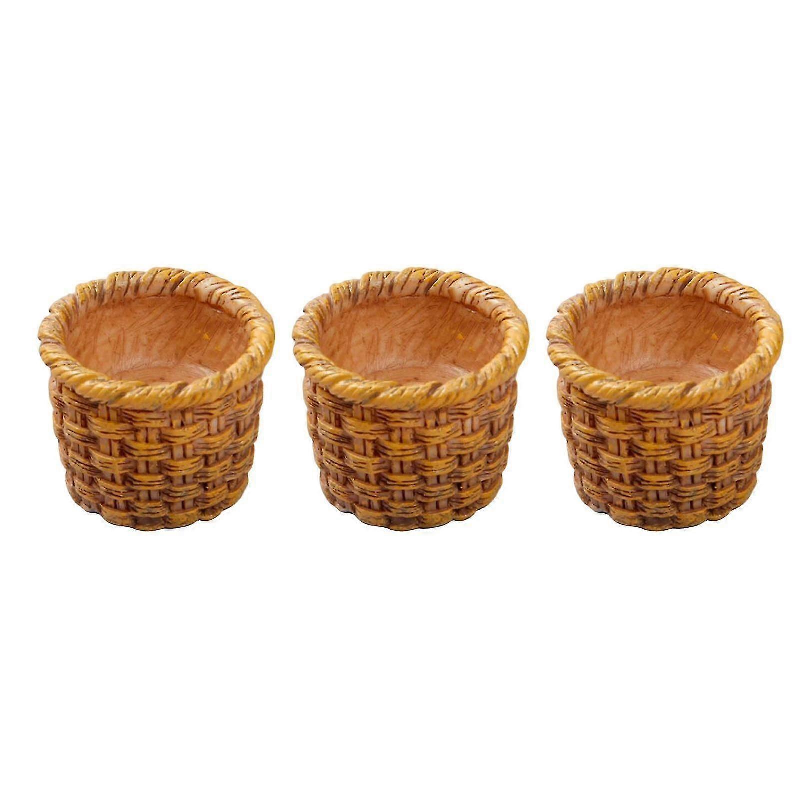 3pcs Rattan Basket 1/12 Accs Mini Diy For Toy Kitchen