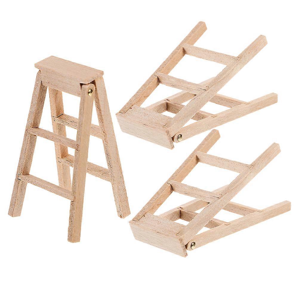 3pcs Mini Wooden Ladder for Dollhouse Furniture – Unfinished, Custom Paintable, Compact Design for Miniature Scenes, Fairy Garden Decor, Realistic
