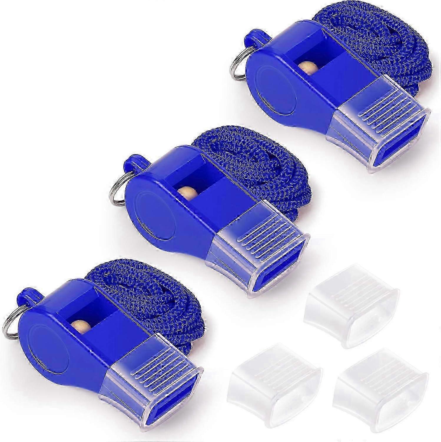 3PCS Loud Sports Whistle with Lanyard & Mouth Grip - Referee Coach Emergency Whistle (Blue) Edition 0813
