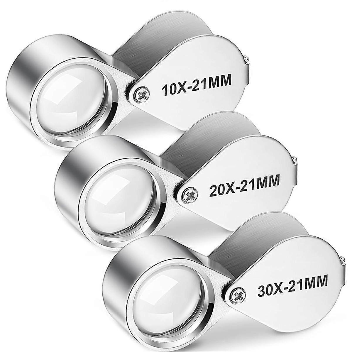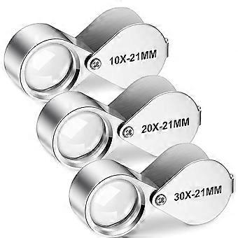 3 Pieces Jewelers Eye Loupe Set 10X, 20X and 30X Pocket Jewelry Loupe, Jewelers Eye Magnifying Glas